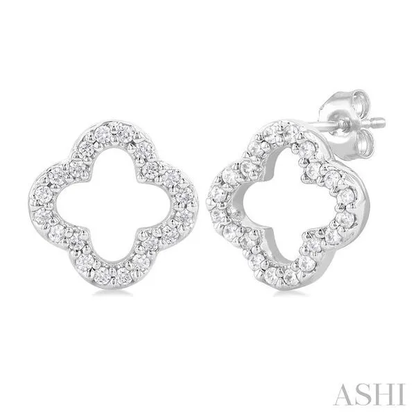 (319) 752-31961/6 Ctw Petite Clover Round Cut Diamond Fashion Stud Earring in 10K White Gold