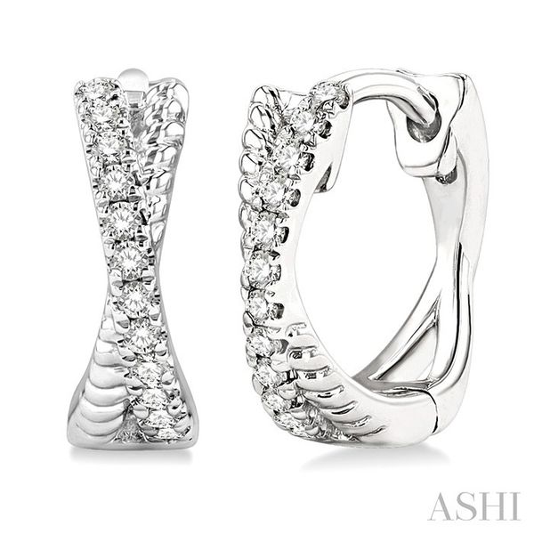 1/6 Ctw Petite Criss Cross Rope and Round Cut Diamond Fashion Huggies in 14K White Gold Becker's Jewelers Burlington, IA