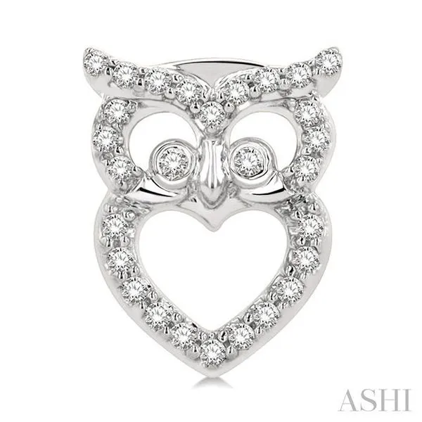 (319) 752-31961/6 Ctw Petite Owl Round Cut Diamond Fashion Stud Earring in 10K White Gold