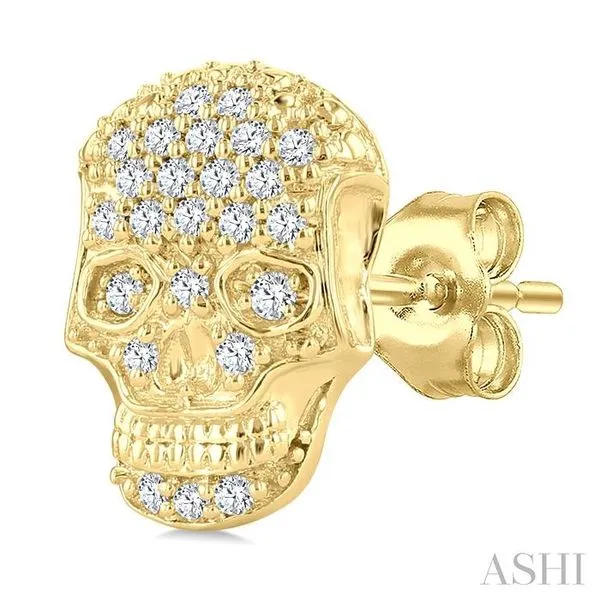 (319) 752-31961/6 Ctw Petite Skull Single Cut Diamond Fashion Earrings in 10K Yellow Gold