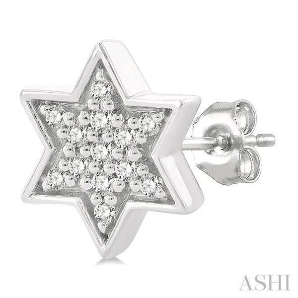 3. 1/6 Ctw Petite Star of David Round Cut Diamond Fashion Stud Earring in 10K White Gold