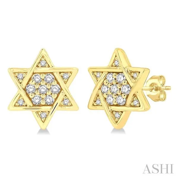 (319) 752-31961/6 Ctw Petite Star of David Round Cut Diamond Fashion Stud Earring in 10K Yellow Gold