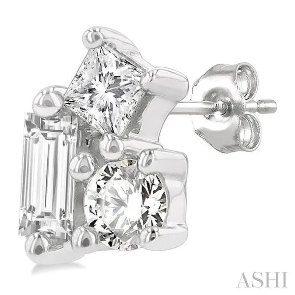 (319) 752-31961/6 Ctw Petite Tri-Stone Scatter Princess, Baguette & Round Cut Diamond Fashion Stud Earring in 10K White Gold
