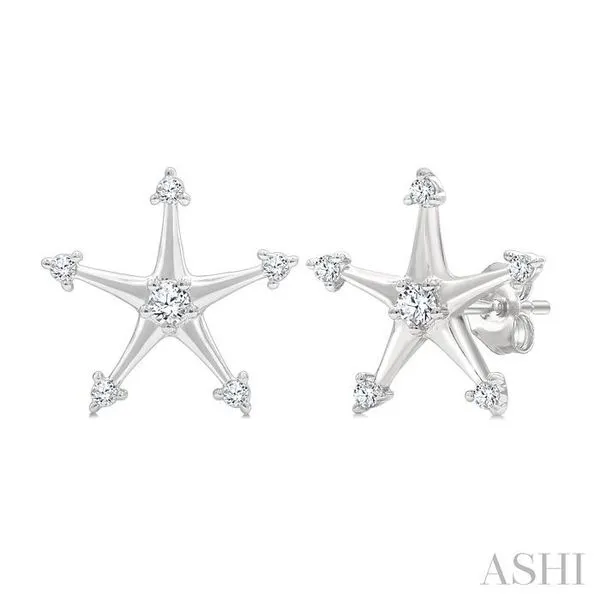 (319) 752-31961/6 Ctw Round Cut Diamond Star Petite Earrings in 10K White Gold