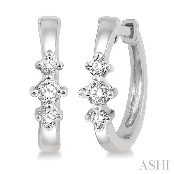 (319) 752-31961/6 Ctw Three Stone Round Cut Diamond Huggie Petite Earrings in 14K White Gold