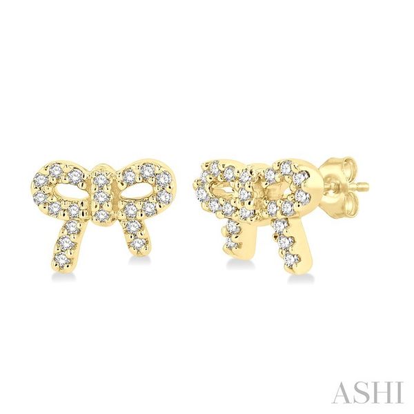 1/8 Ctw Bow Tie Round Cut Diamond Petite Fashion Earring in 10K Yellow Gold Image 2 Becker's Jewelers Burlington, IA