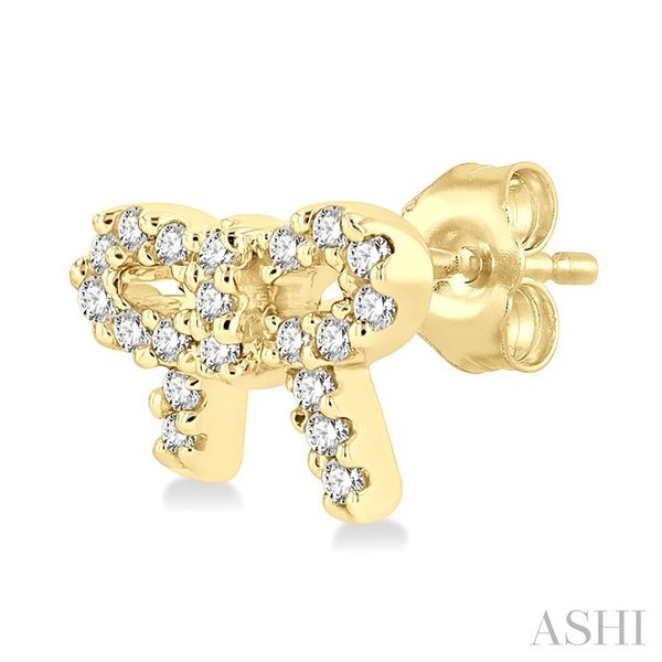 1/8 Ctw Bow Tie Round Cut Diamond Petite Fashion Earring in 10K Yellow Gold Image 3 Becker's Jewelers Burlington, IA