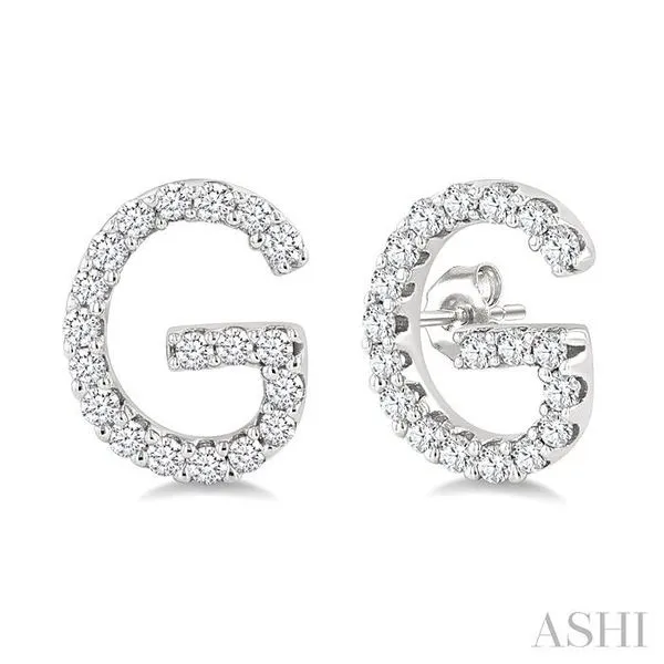 (319) 752-31961/8 Ctw Initial 'G' Single Cut Diamond Earrings in 10K White Gold
