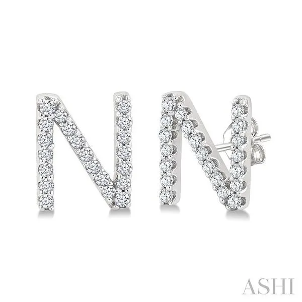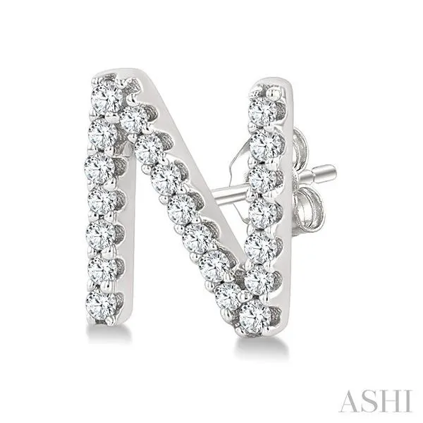 (319) 752-31961/8 Ctw Initial 'N' Single Cut Diamond Earrings in 10K White Gold
