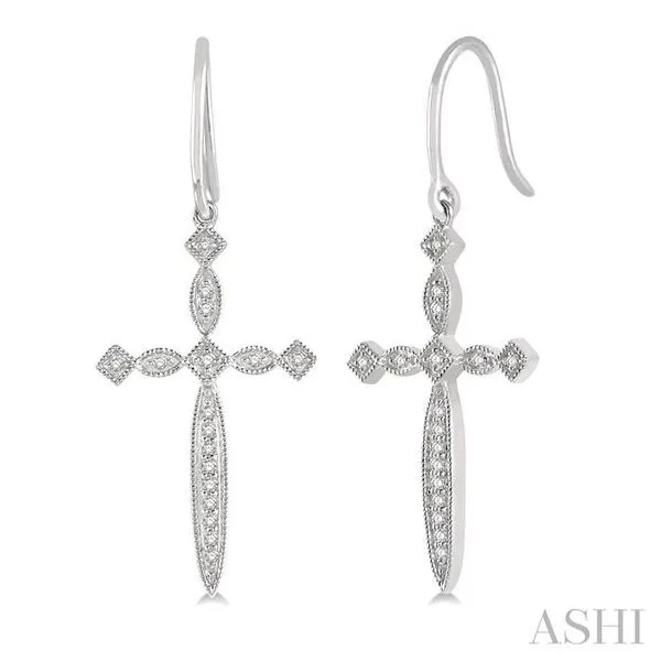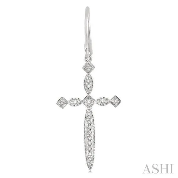 (319) 752-31961/8 Ctw Marquise & Diamond Mount Cross Charm Round Cut Diamond Earring in 10K White Gold