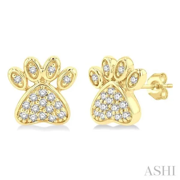 (319) 752-31961/8 Ctw Petite Dog Paw Round Cut Diamond Fashion Stud Earring in 10K Yellow Gold