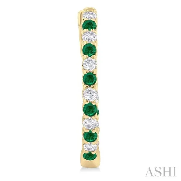 (319) 752-31961.8 MM Emerald and 1/2 Ctw Round Cut Inside-Out Diamond Precious Hoop Earrings in 14K Yellow Gold