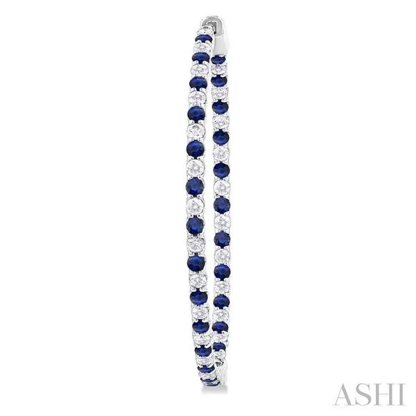 (319) 752-31961.9 MM Round Cut Sapphire and 1 1/2 Ctw Round Cut Diamond Precious Inside-Out Alternating Hoop Earrings in 14K White Gold