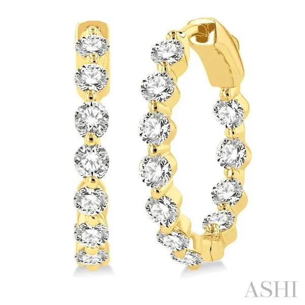 (319) 752-31962 Ctw Inside-Out Single Prong Set Round Cut Diamond Hoop Earrings in 14K Yellow Gold