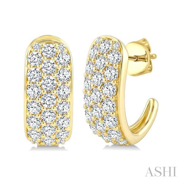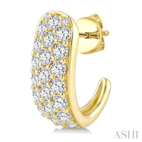 2 Ctw Triple Row Round Cut Diamond Fashion Half Hoop Earrings in 14K Yellow Gold Image 2 Becker's Jewelers Burlington, IA