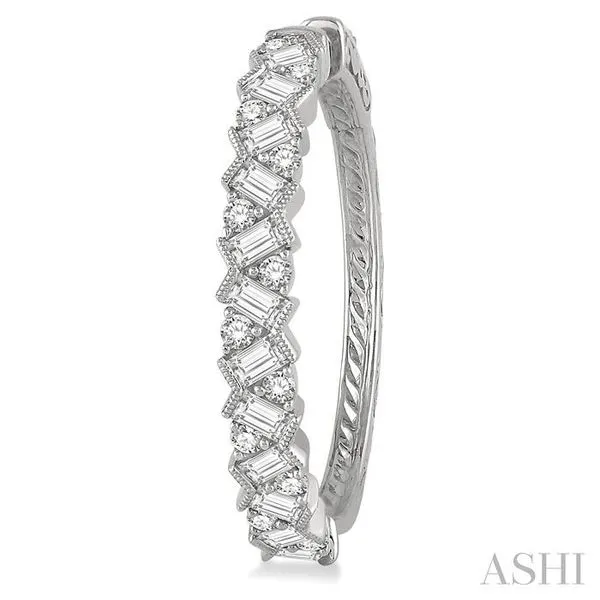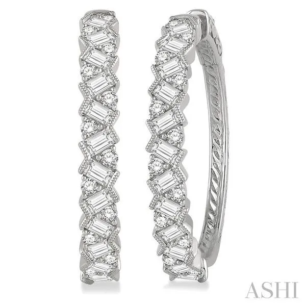 (319) 752-31962 Ctw Zigzag Baguette and Round Cut Diamond Hoop Earring in 14K White Gold