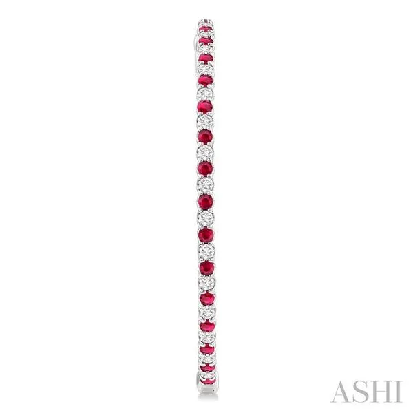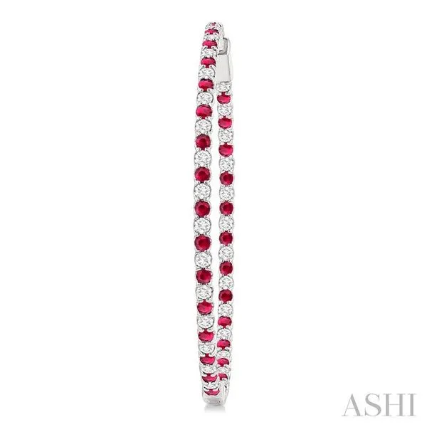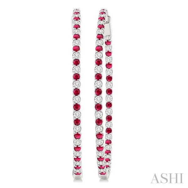 (319) 752-31962.1 MM Ruby and Alternating 2 1/2 Ctw Round Cut Inside-Out Diamond Precious Hoop Earrings in 14K White Gold