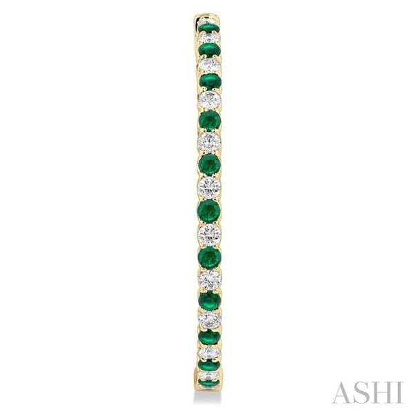 2.5 MM Round Cut Emerald and 2 1/2 Ctw Round Cut Diamond Precious Inside-Out Alternating Hoop Earrings in 14K Yellow Gold Image 3 Becker's Jewelers Burlington, IA