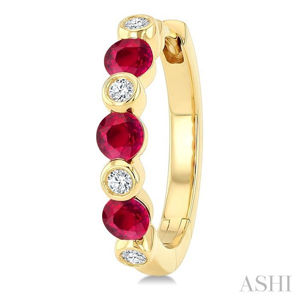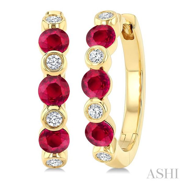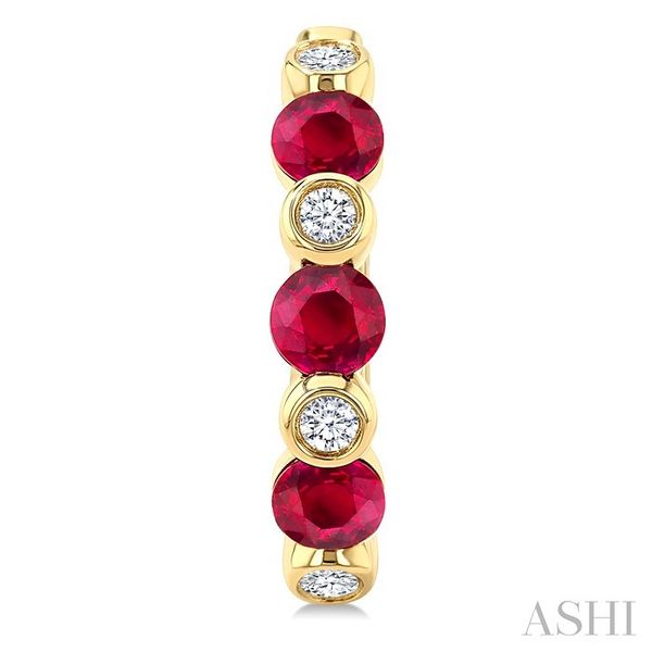 2.60 MM Round Shape Ruby and 1/10 Ctw Interior & Exterior Round Cut Diamond Precious Hoop Earrings in 10K Yellow Gold Image 3 Becker's Jewelers Burlington, IA