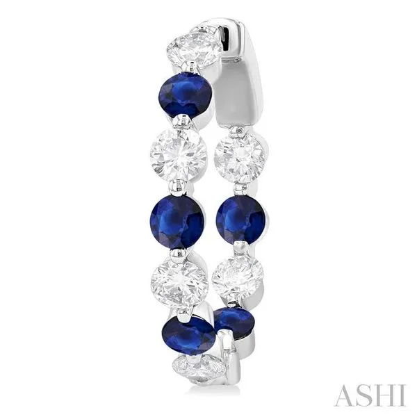 (319) 752-31962.85 MM Round Cut Sapphire and 1 Ctw Round Cut Diamond Precious Inside-Out Alternating Hoop Earrings in 14K White Gold