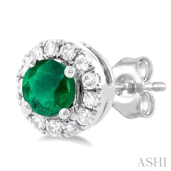 (319) 752-31963.25 MM Round Emerald and 1/10 Ctw Single Cut Diamond Halo Precious Stud Earrings in 10K White Gold