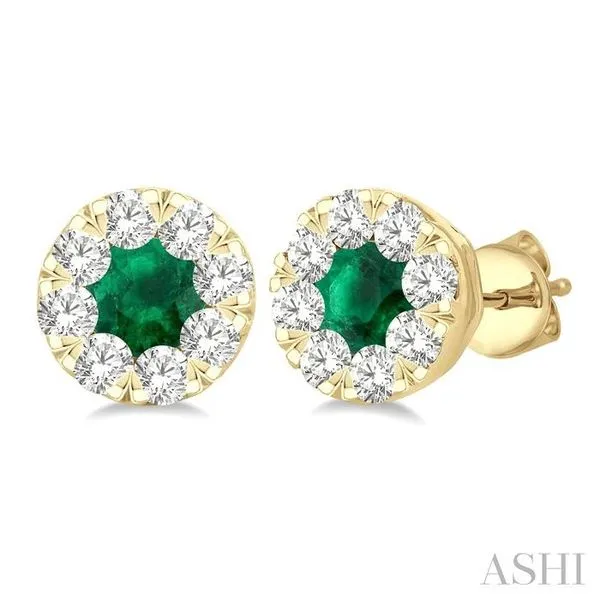 (319) 752-31963.3 MM Emerald and 1/2 Ctw Round Cut Diamond Lovebright Precious Stud Earrings in 14K Yellow Gold