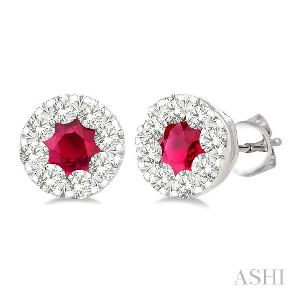 (319) 752-31963.3 MM Ruby and 1/2 Ctw Round Cut Diamond Lovebright Precious Stud Earrings in 14K White Gold