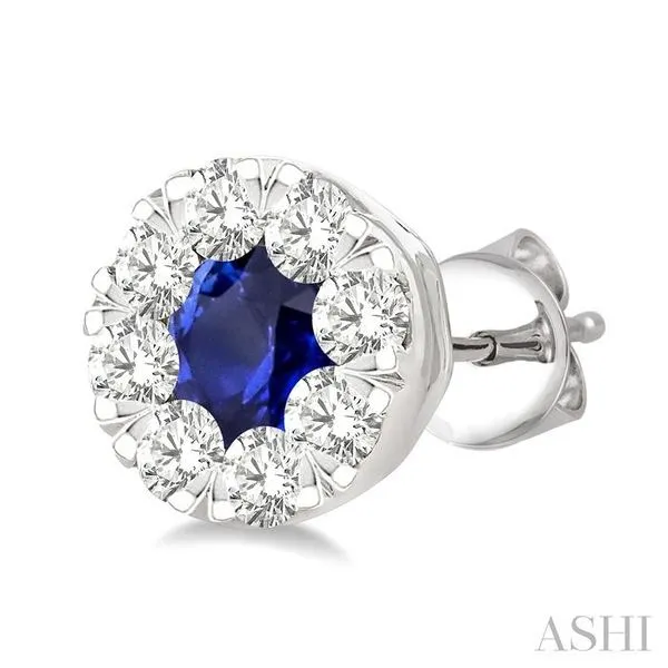(319) 752-31963.3 MM Sapphire and 1/2 Ctw Round Cut Diamond Lovebright Precious Stud Earrings in 14K White Gold