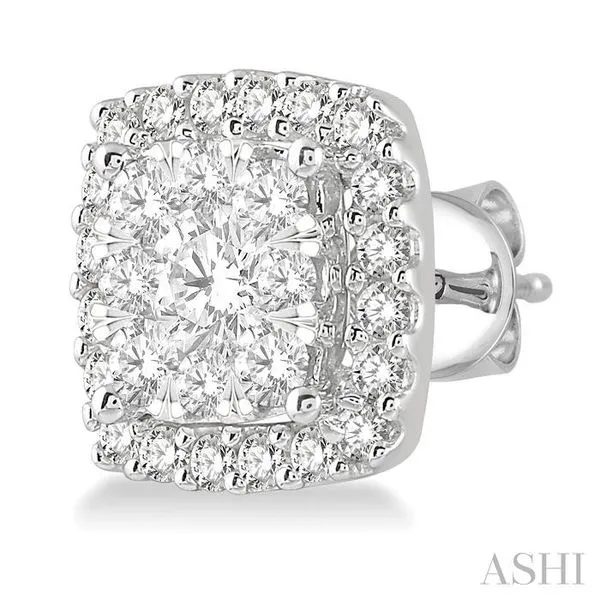 (319) 752-31963/4 Ctw Cushion Shape Lovebright Round Cut Diamond Stud Earrings in 14K White Gold