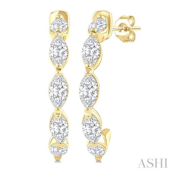 3/4 Ctw Marquise Cut Diamond Link Fashion Half Hoop Earrings in 14K Yellow Gold Image 2 Becker's Jewelers Burlington, IA