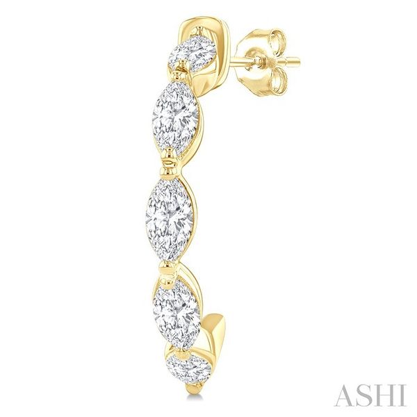 3/4 Ctw Marquise Cut Diamond Link Fashion Half Hoop Earrings in 14K Yellow Gold Image 3 Becker's Jewelers Burlington, IA