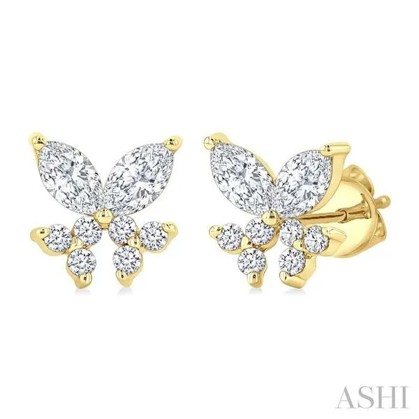 (319) 752-31963/8 Ctw Marquise and Round Cut Diamond Criss Cross Fish Stud Earrings in 14K Yellow Gold