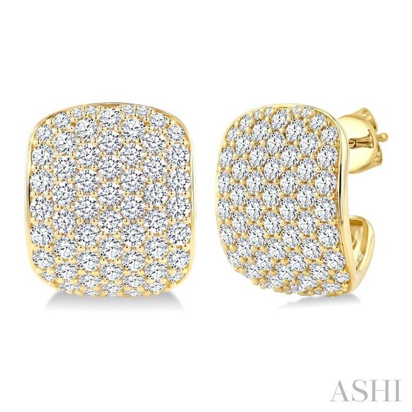 4 3/4 Ctw 7 Row Round Cut Diamond Fashion Half Hoop Earrings in 14K Yellow Gold Image 3 Becker's Jewelers Burlington, IA