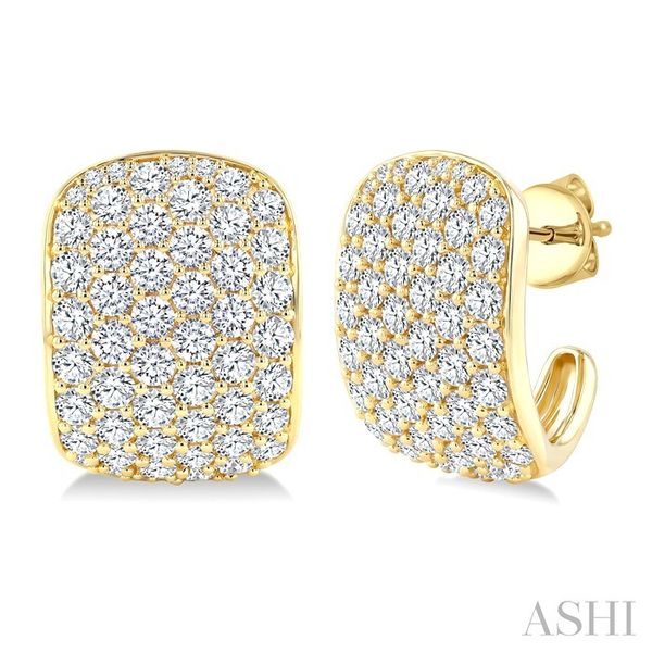 4 Ctw 6 Row Round Cut Diamond Fashion Half Hoop Earrings in 14K Yellow Gold Image 2 Becker's Jewelers Burlington, IA