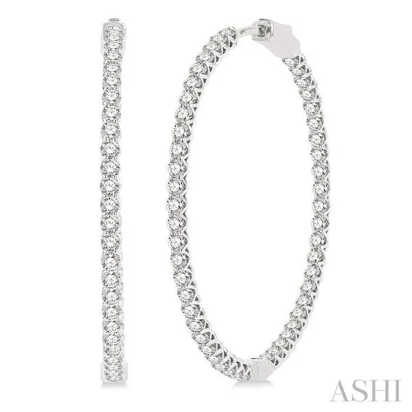 (319) 752-31964 Ctw Inside-Out Round Cut Diamond 1 1/2 Inch Hoop Earrings in 14K White Gold