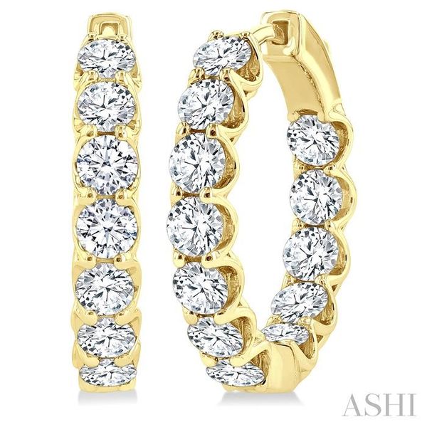 4 Ctw Inside-Out Round Cut Diamond Hoop Earrings in 14K Yellow Gold Image 2 Becker's Jewelers Burlington, IA