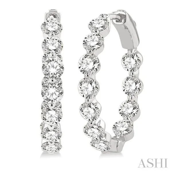 4 Ctw Inside-Out Single Prong Set Round Cut Diamond Hoop Earrings in 14K White Gold Becker's Jewelers Burlington, IA
