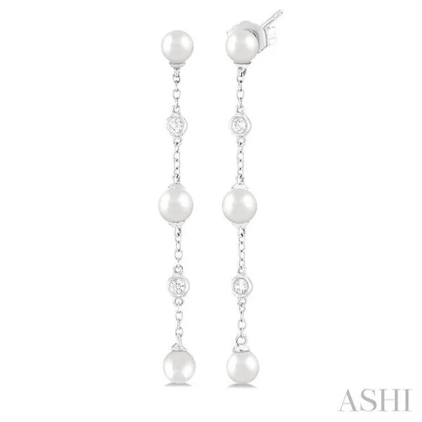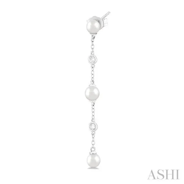 (319) 752-31964 MM Round Shape Cultured Pearls and 1/20 Ctw Round Cut Diamond Station Long Earring in 14K White Gold