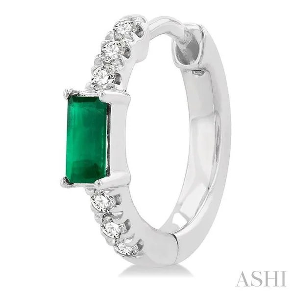 (319) 752-31964X2 MM Baguette Cut Emerald and 1/8 Ctw Petite Round Cut Diamond Fashion Huggies in 10K White Gold
