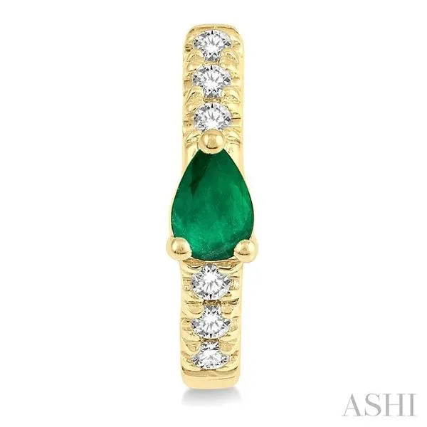 (319) 752-31964X3 MM Pear Cut Emerald and 1/10 Ctw Single Cut Diamond Petite Huggie Earrings in 10K Yellow Gold