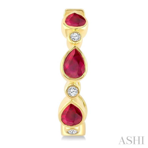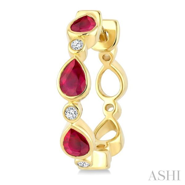 4X3 MM Pear Shape Ruby and 1/20 Ctw Bezel Set Round Cut Diamond Fashion Hoop Earrings in 10K Yellow Gold Image 3 Becker's Jewelers Burlington, IA