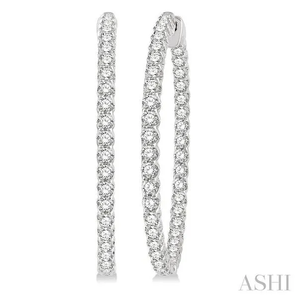 (319) 752-31965 Ctw Inside-Out Round Cut Diamond 1 1/2 Inch Hoop Earrings in 14K White Gold