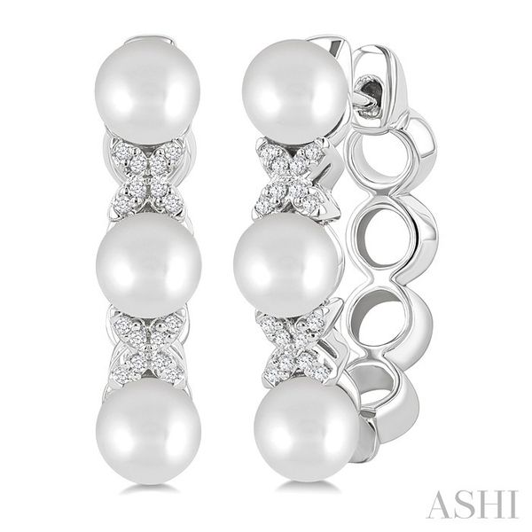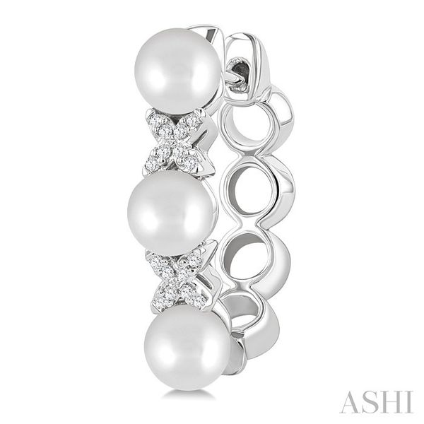 5 MM Cultured Pearl and 1/10 Ctw Round Cut Diamond Flower Earrings in 14K White Gold Image 3 Becker's Jewelers Burlington, IA