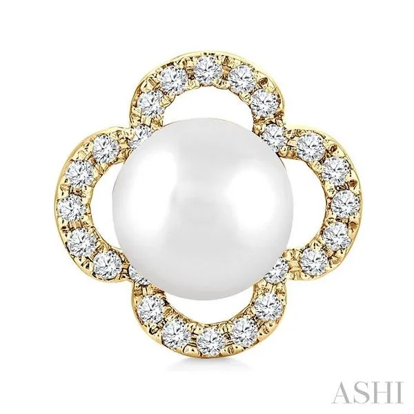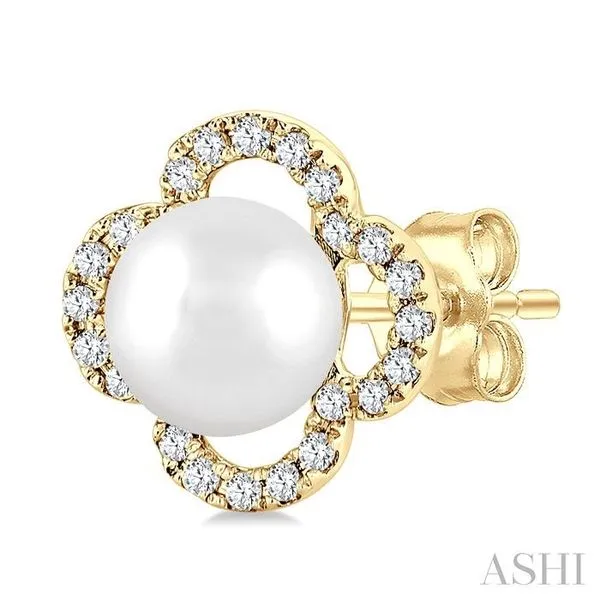 (319) 752-31965 MM Cultured Pearl and 1/6 Ctw Single Cut Diamond Clover Petite Fashion Earrings in 10K Yellow Gold