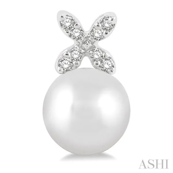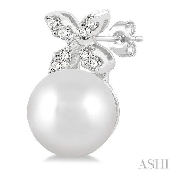 (319) 752-31965.5 MM Round Shape Cultured Pearls and 1/20 Ctw Petite 4-Petal Flower Round Cut Diamond Fashion Stud Earring in 10K White Gold