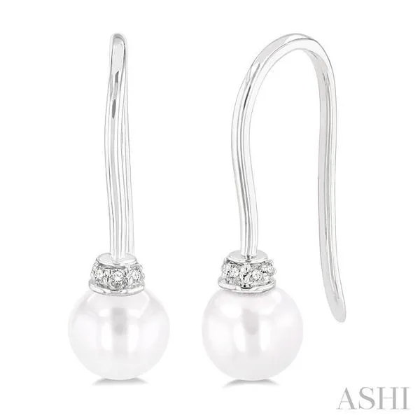 (319) 752-31965.5 MM Round Shape Cultured Pearls and 1/20 Ctw Round Cut Diamond Petite Fashion Earring in 10K White Gold