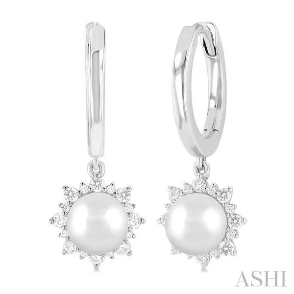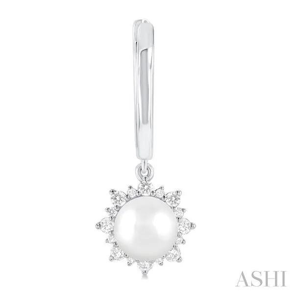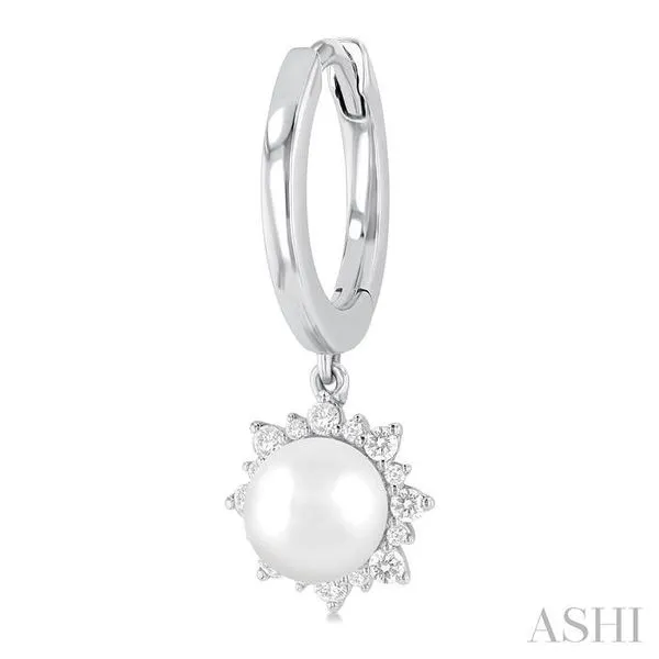 (319) 752-31965.5 MM Round shape Cultured Pearls and 1/5 Ctw Round Cut Diamond Petite Fashion Huggies in 10K White Gold