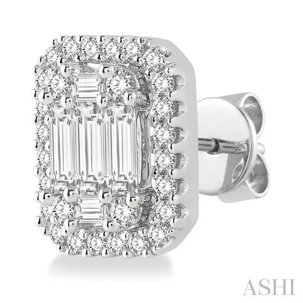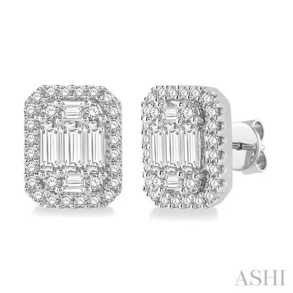 (319) 752-31965/8 Ctw Octagonal Baguette & Round Cut Diamond Stud Earrings in 14K White Gold