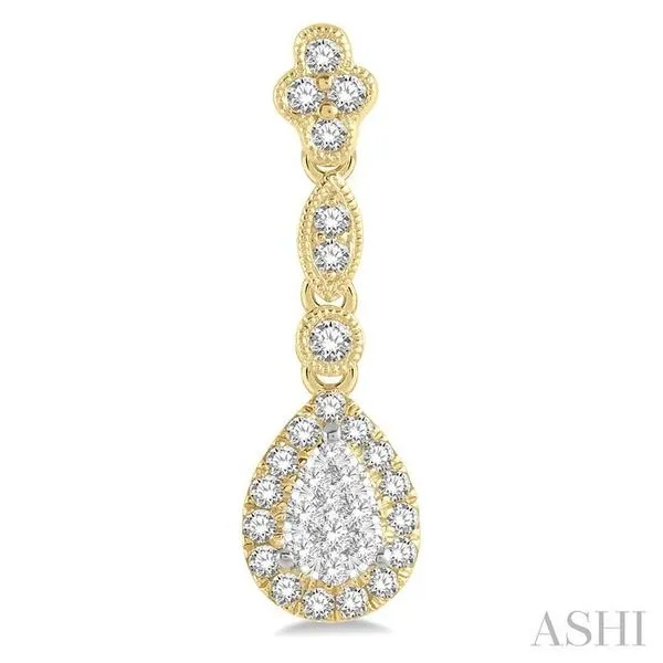 (319) 752-31965/8 Ctw Pear Shape Halo Lovebright Round Cut Diamond Earrings in 14K Yellow and White Gold