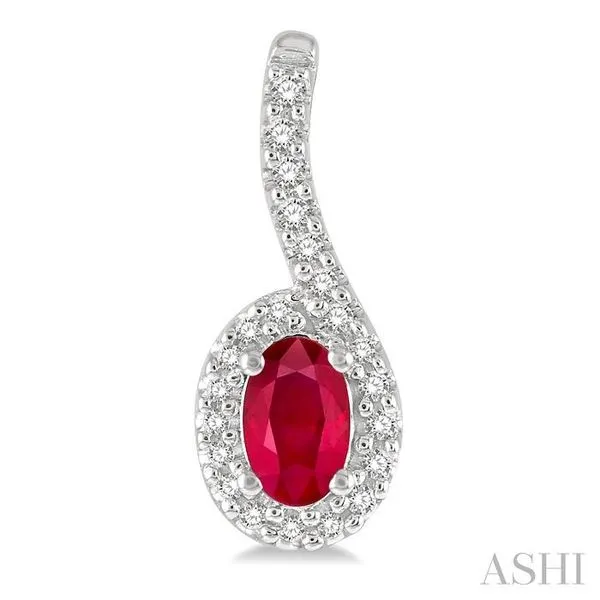 (319) 752-31965x3 MM Hanging Arm Oval Cut Ruby and 1/6 Ctw Round Cut Diamond Precious Earring in 10K White Gold